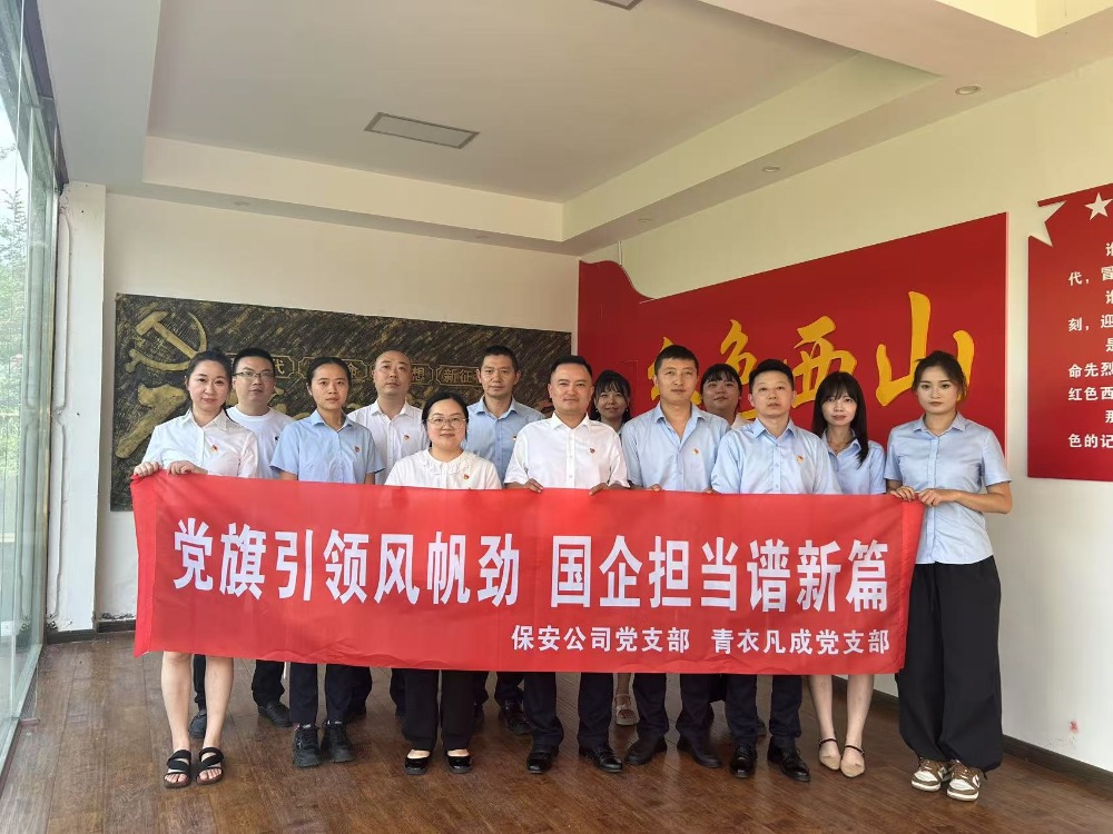 本网讯(夹江保安)为庆祝中国共产党成立104周年,深入学习宣传贯彻党的二十大精神,赓续红色血脉,推动党建与业务深度融合。7月1日,夹江县保安服务公司党支部与四川青衣凡成商业管理有限公司党支部联合开展“党旗引领风帆劲 国企担当谱新篇”主题联建活动。