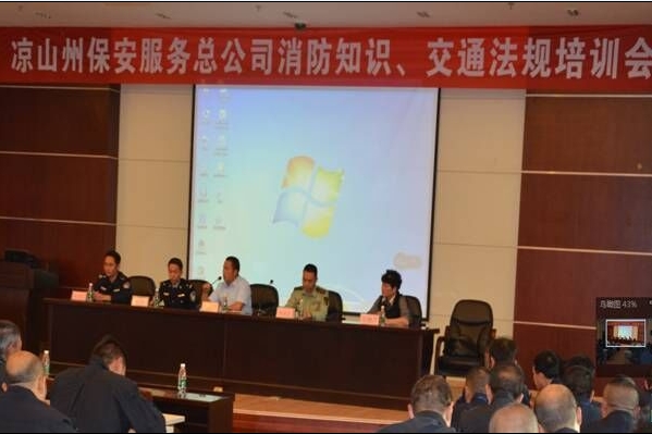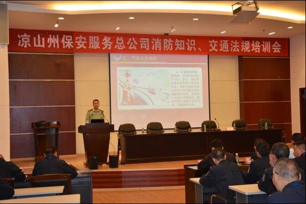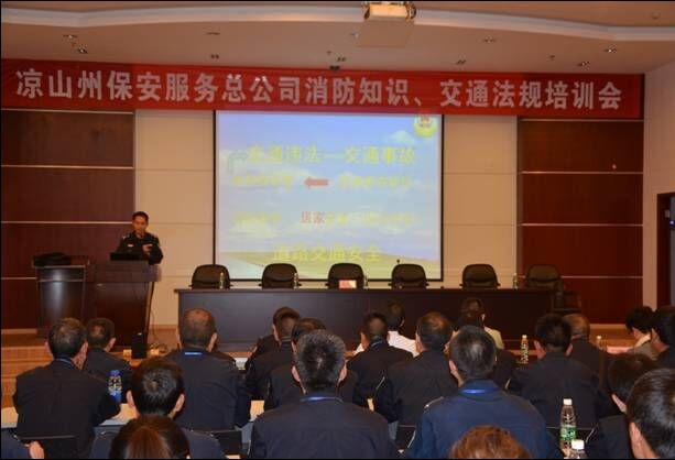 本网讯(通讯员邢开宏.姚金良)2016年4月25日晚19时,“凉山州保安服务总公司消防知识、交通安全法规培训会”在中行凉山分行三楼会议室举行。培训开始时,张红斌总经理对所有参训人员提出了明确要求:培训的目的,就是要让大家知法守法,学以致用!