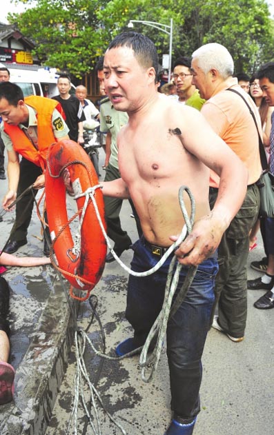 6月12日9时30分,九眼桥和安顺廊桥间的丝管路上,一阵呼喊声突然打破宁静,先是一位男子大喊:“救命,快来人!”紧跟着,散步市民的呼救声此起彼伏:“这里有人跳河了!”此时,河中间漂着一个红衣女子,双手扑腾,时沉时浮。