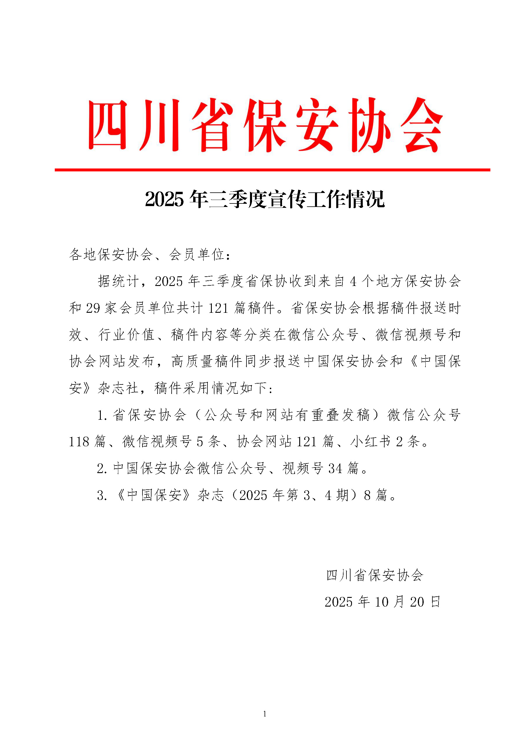 四川省保安协会2025年三季度全省保安企业宣传情况