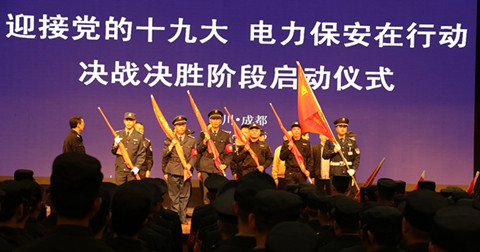 启动仪式上,各参会领导对参加“迎接十九大,电力保安在行动,决战决胜阶段”活动的保安公司进行了隆重的授旗仪式。授旗仪式后,参会保安员代表就做好十九大相关安保工作作了表态发言。