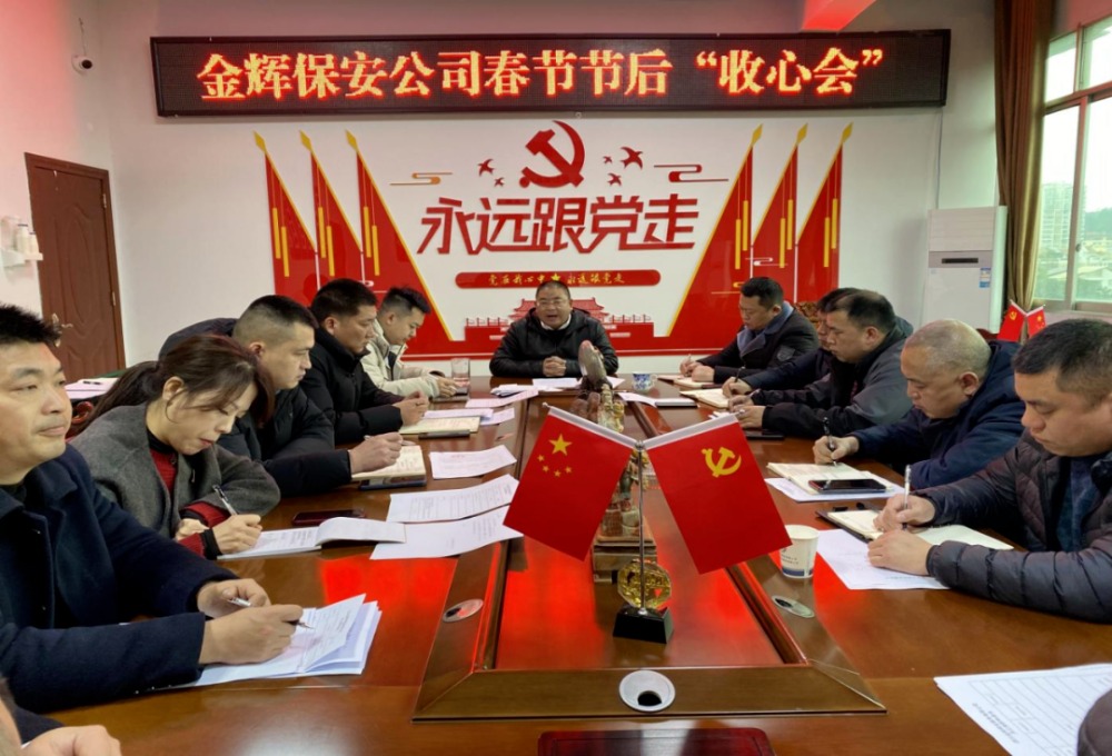 本网讯(金辉保安)2025 年 2 月 5 日,在新春佳节的喜庆氛围尚未完全消散之际,四川金辉保安服务有限公司迅速组织召开节后收心会。公司领导班子以及各片区、大队负责人齐聚一堂,共同开启新一年的奋斗征程。