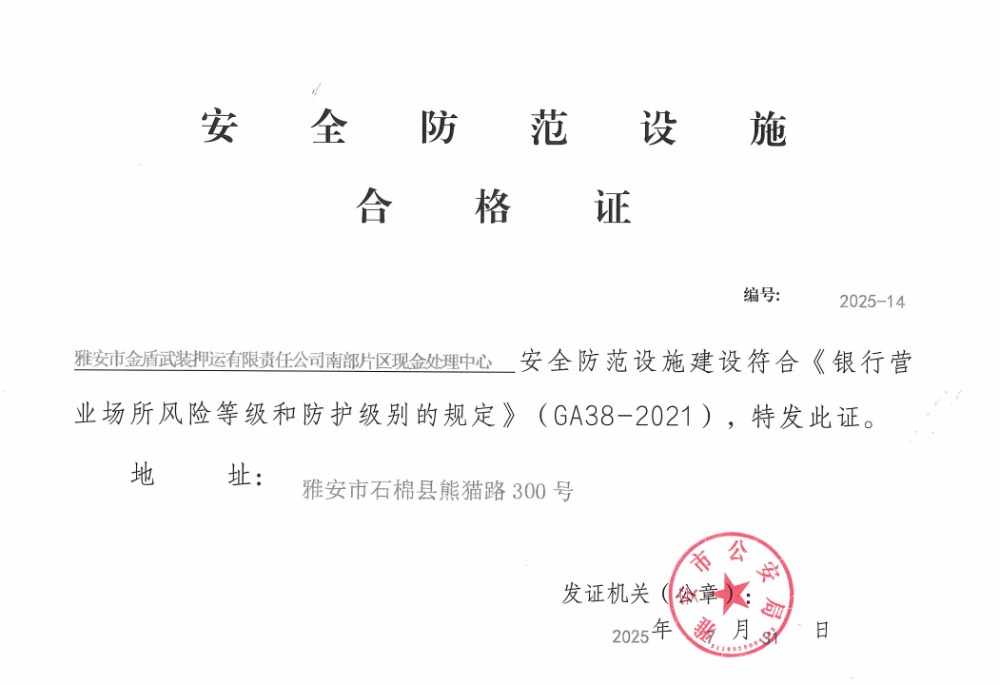 专家组一行现场听取了金库项目建设过程有关情况汇报,实地查看了项目现场技防、物防等设施设备的安装情况,并现场查阅了金库项目建设相关资料。经专家组综合评估,南部片区现金处理中心金库项目顺利完成验收,并经市公安局审批通过,并发放《安全防范设施合格证》。