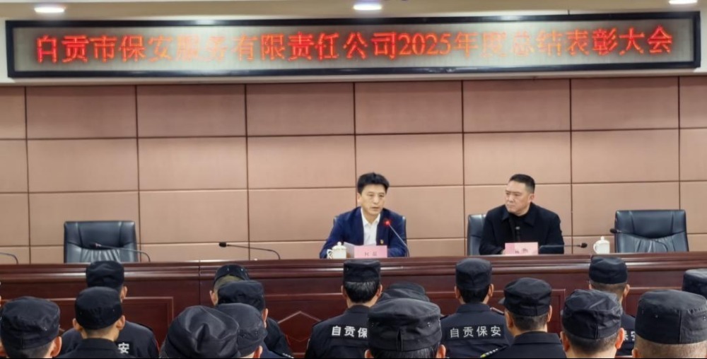 2月5日,自贡市保安服务有限责任公司召开2025年度总结表彰大会。自贡市国投集团党委委员、副总经理何磊到会颁奖并讲话,市保安公司总经理陈伟主持会议。公司各级管理人员及62名获奖集体代表与先进个人参会。
