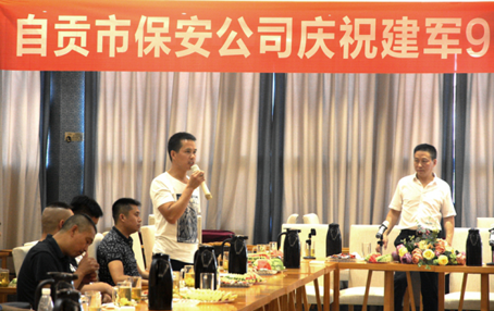 本网讯(通讯员 黄其友)7月28日下午,火热的骄阳炙烤着盐都大地。自贡市保安服务有限责任公司83名退伍军人代表不畏酷暑欢聚一堂,热烈庆祝中国人民解放军建军90周年。公司董事长秦东海、副总经理陈伟、副书记陈义友、监事会主席张兴勇参加座谈。董事长代表公司临时党委向参加座谈会的复员退伍军人表示节日的祝贺,向他们爱岗敬业、无私奉献的工作精神和雷厉风行、令行禁止的工作作风表示赞扬,感谢他们为自贡保安公司的发展壮大做出的积极贡献。