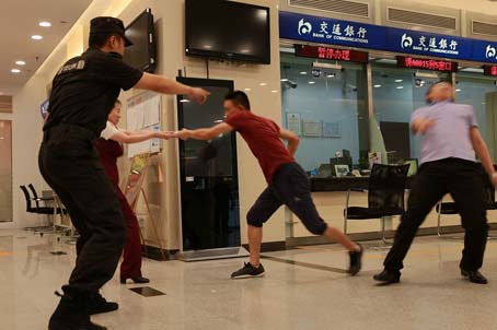 “演练很真实”、“保安员真神勇!”现场目睹“银行防抢劫演练”一幕的客户和银行员工无不赞许称道。