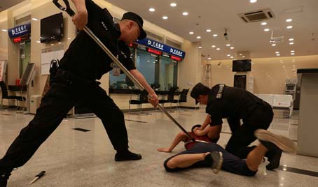 据介绍,近年来,泸州市保安服务有限责任公司铁神臂分公司针对“银行发生歹徒持刀抢劫”、“银行发生歹徒抢夺顾客提包”等可能发生的案件,积极制定工作预案,主动与勤务派驻银行保卫部门加强联系,适时会同组织开展各种形式的实战演练,提高处置各类突发事件的能力,确保银行系统内部安全。