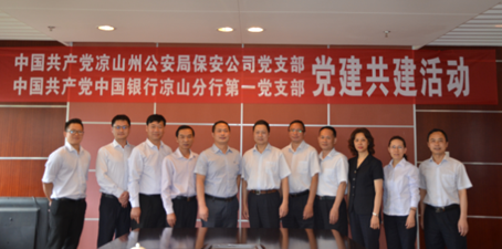 最后,中国共产党凉山州公安局保安公司党支部与中国共产党中国银行凉山分行第一分行就党建结对共建达成了共识,双方党支部书记在《党建结对共建协议书》上慎重的签下了自己的名字,并合影留念。