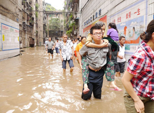 连日来,由于强降雨天气,长江泸州段遭遇50年一遇的特大洪水。长江泸州段保证水位为16.5米,7月23日3时,长江泸州段洪峰达到17.64米,超过保证水位1.14米。23日8时,长江泸州段洪峰达到19.04米,超过保证水位2.54米,长江水位超过滨江路面2米至3米,临江楼房一层进水。洪峰于23日下午3时抵达泸州,最高水位达到19.62米。这次长江上游泸州段洪峰水位距泸州市1948年的百年一遇特大洪水仅差0.34米,泸州市城区许多居民住房、商铺被洪水淹没。