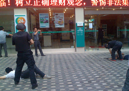 本网讯(朱鹏飞)为提高守押人员和银行员工对突发事件的应急处理能力,增强安全防范和风险意识,6月8日下午,雅安市保安公司与农业银行雅安分行在挺进路网点开展防抢劫预案演练。