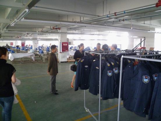 为认真贯彻中国保安协会和省公安厅、省保安协会关于保安服装换发工作通知精神和市公安局领导的要求,宜宾市保安协会为尽快启动全市保安服装换发工作,确保全市保安服务单位能从诚信、守法经营的生产销售保安服装企业、购买质优价格合理的产品,积极为各企业在换装过程中,提供服务保障、搞好协调,协会于2012年4月13日-14日,由秘书长王礼文带领有关企业人员前往由中国保安协会在四川省确定的“成都金柏服饰有限责任公司”等5家有资质生产销售2011式保安员服装和保安服务标志单位进行调研、实地生产企业、车间进行考察。